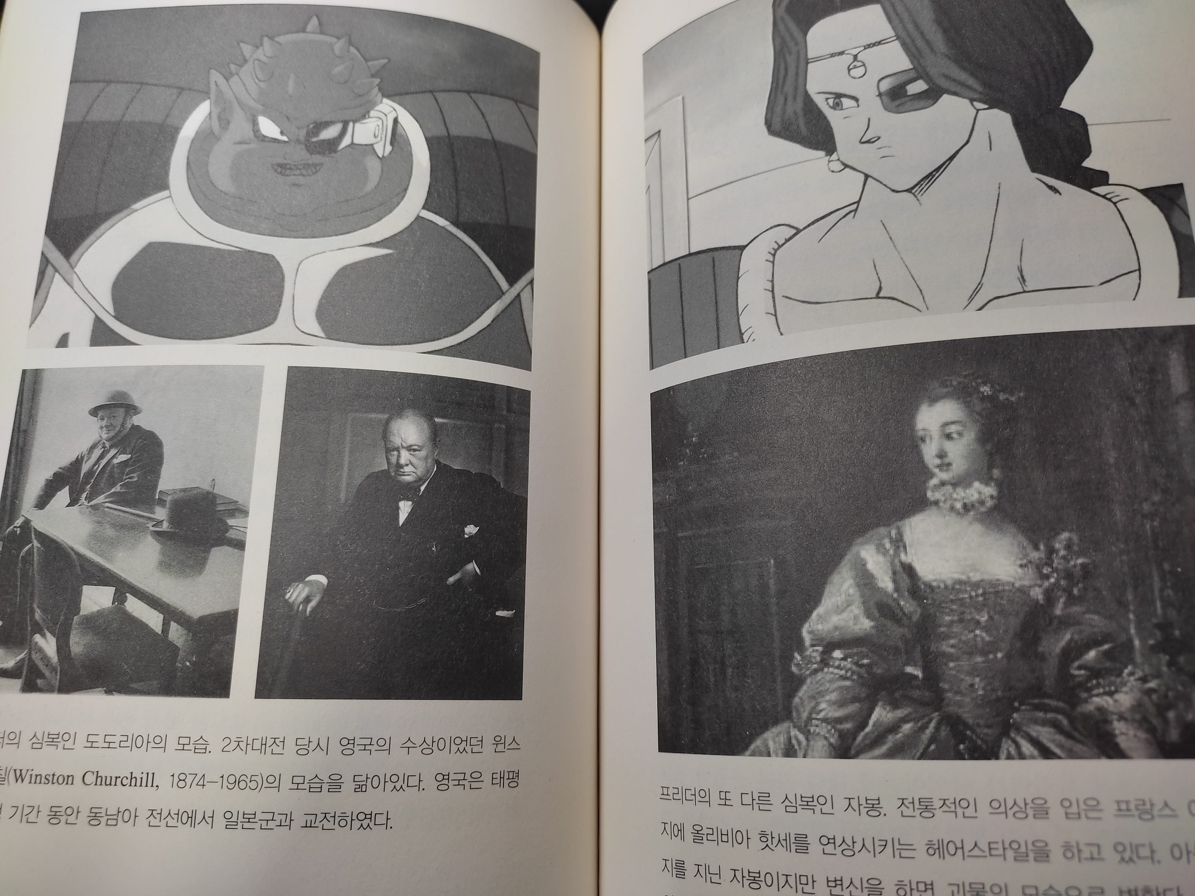 프리더를 미국(휠체어를 탄 강력한 권력의 루즈벨트에 비유), 도도리아를 영국(처질사진과 같이 두고 닮았다고 한다. 나는 안 닮은 것 같은데), 자봉을 프랑스(변신전에는 깔끔하고 잘 생겼지만 변신후에는 괴물같이 변한다)에 비유한 것도 은근히 신선하다고 생각한다. 하지만 가만 생각해보면 너무 끼워맞추기 식인 거 같기도 하다.