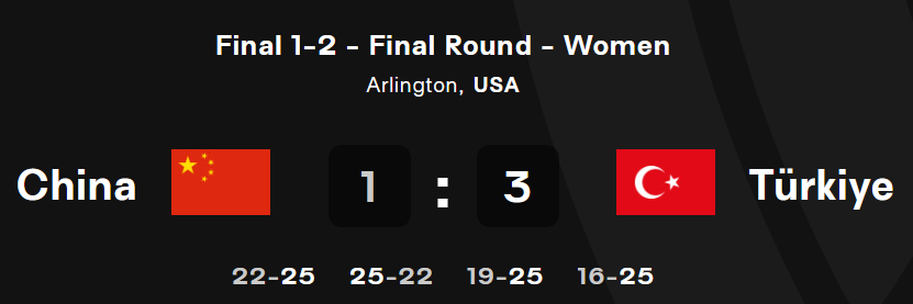튀르키예는 예선리그에서 일본, 미국에 2:3으로 지고 폴란드에 0:3으로 졌다(이 경기들만 졌다). 내가 볼 때는 최강의 팀이었으나 4강에 올라온 팀 중에 두 팀에게 졌다는 기록 때문에 혹시나 우승하지 못하는 것이 아닐까 라는 생각도 하였다. 실제 그 날 컨디션에 따라 실력이 들쭉날쭉한 여자배구의 특성상 변수가 있을 수도 있다고 생각이 들었다. (내가 볼 때는 도쿄 올림픽에서 우리나라가 터키를 8강에서 탈락시킨 것 역시 같은 이유로 설명이 가능하다. 그 때도 미국을 막을 유일한 나라가 튀르키예라는 생각을 했는데(브라질은 공격만 좋아서 강하긴 해도 미국을 이길 팀은 아니라고 보였다) 예상치 못하게 우리나라에 져버리는 결과가 나온 것이다. 우리나라는 최상의 컨디션과 정신무장이었다면 튀르키예 대표팀은 자국에서 당시에 일어났던 지진에 피해를 입은 국민들을 위로한다는 명분에 짓눌린 느낌이었다)