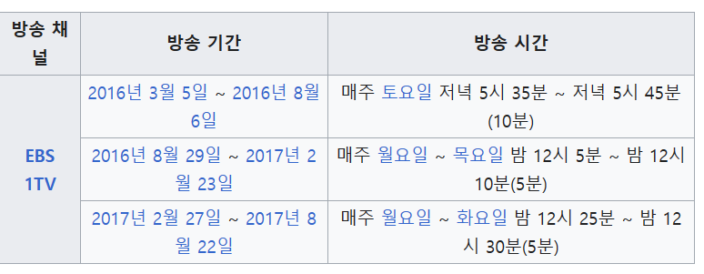 토요일 10분 하던 방송을 월~목요일 5분씩하다가 버거웠는지 월, 화 2일만 5분 하는 것으로 바뀌었다. 책으로 짐작해본 방송내용은 만화를 통해 그날의 주제를 설명하는데 이를 개그맨 정성호씨의 다양한 목소리로 읽어주는 형식을 취한 것 같다. 그리고 본론으로 들어가서 내용을 설명하고 관련된 실험등을 말해주면서 끝나는 듯 하다.