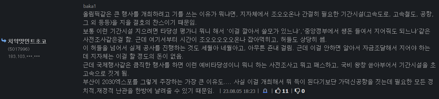 부산이 2030엑스포를 그렇게 주장하는 가장 큰 이유도.... 사실 이걸 개최해서 뭐 득이 된다기보단 가덕신공항을 짓는데 필요한 모든 정치적,재정적 난관을 한방에 날려줄 수 있기 때문임.